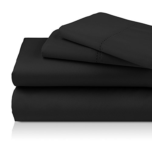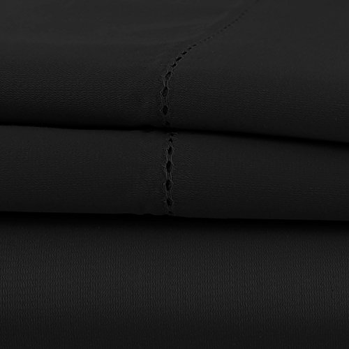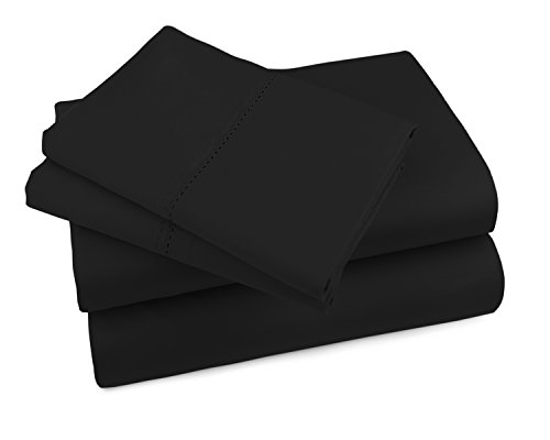 Luxor Linens Lorenzo Luxurious 1000-Thread-Count 100% Mercerized Egyptian Cotton 4-Piece Solid Sheet Set - Extra Long Staple, Crisp & Cool - Full - Black