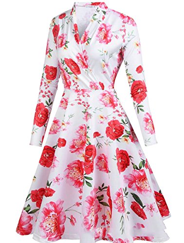 -. Title : maweisong 女子レトロvネックプリント花プリーツスイングのパーティードレス