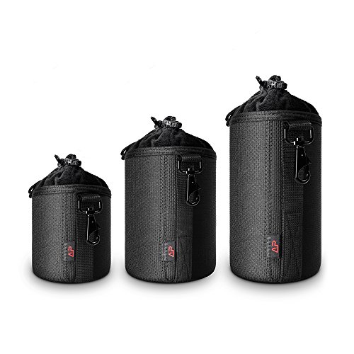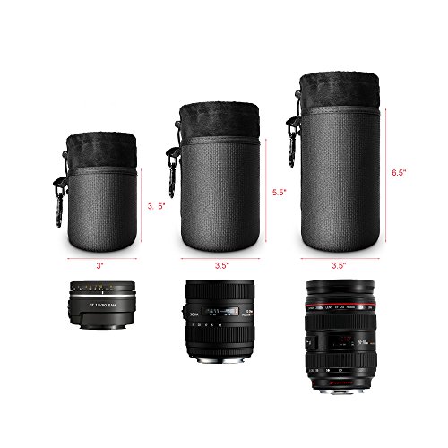 Lightning Power - Waterproof Thick Neoprene Protective DSLR Camera Lens Pouch Bag Case with Metallic Swivel Hook for Canon / Sony / Nikon (3 in 1 Bundle)