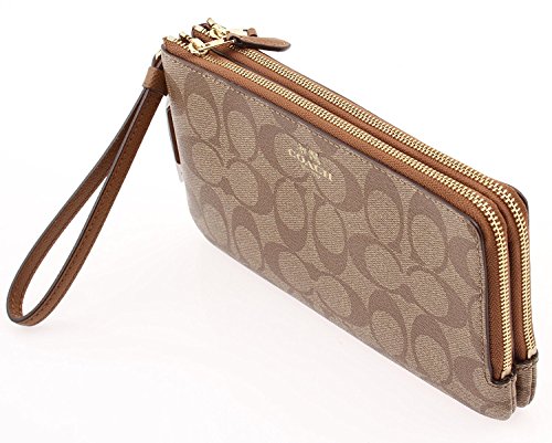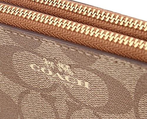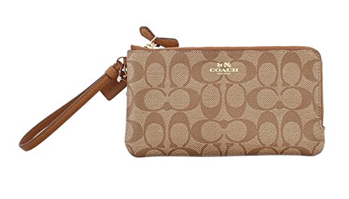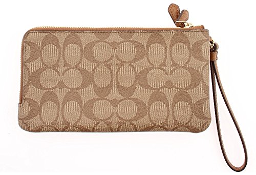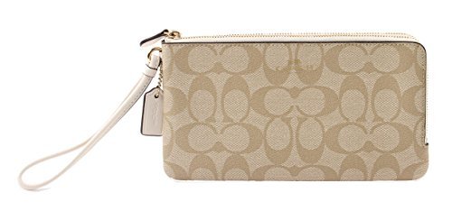 Coach Signature Double Zip Wallet Wristlet, F54057 (Lt.Khaki/Chalk)
