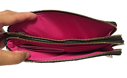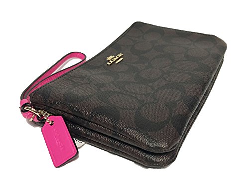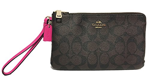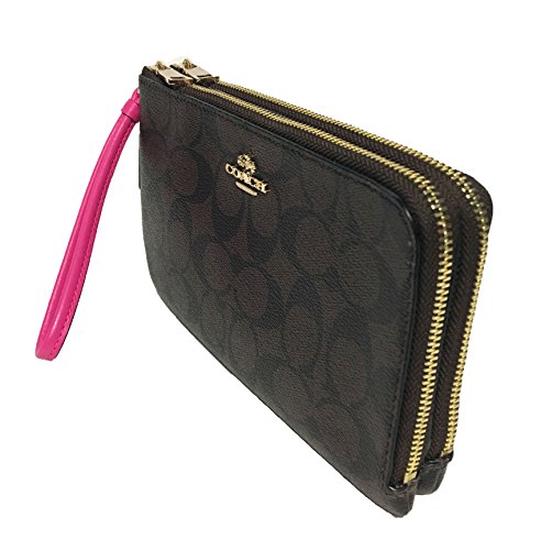 Coach Signature PVC Double Zip Wristlet (IM/Brown Bright Fuchsia)