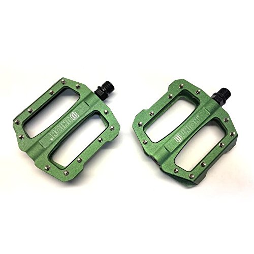 The Union brand founded in Germany in 1899 started producing bicycle chains and from there moved on to many bicycle components. UNION products are all rigorously tested under many conditions and pass ISO certifications. The UNION MP7 Series SP1300 Pedal allows you to ride on any terrain with innovative no slip pins that help keep you on the pedals when on rigorous terrain. A Thrust Bearing System will offer balanced and continues performance in cornering acceleration and prevent the loss of a powerful centrifugal force.Feature