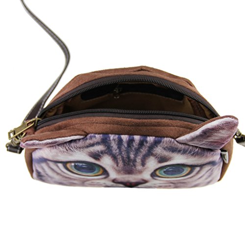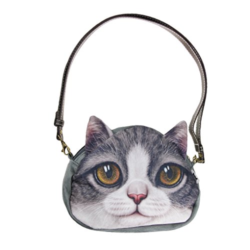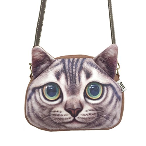 FakeFace Damen 3D Katzenkopf Schultertasche Crossbody Bag Henkeltasche Handtasche Damentasche Handytasche mit Katze Aufdruck fur Wandern Aussflug Shopping