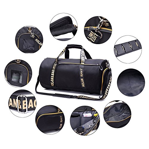 Product Description Crazy for Gym~ UBORSE Sports Bag with Shoes Compartment Ventilated Workout Bag for Men Travel Duffel Weekend Luggage Gym bag for Women Structure: 1. Front zipper pocket: contain 3 open pouch, for paper phone keys and other small items. 2. Large main storage space with full length zipper, contain 2 open pouch: ideal for your clothes, towel, personal care articles, book, umbrella, water bottle, etc. 3. Back pocket: for phone power bank or others, separated and make all small items in perfect order. 4. Side mesh pouch: ventilated, wet towel can be hold, good for your gym gear. 5. Separated mesh shoes compartment , clean and hygiene. Warm Tip: 1. Due to the different measurement methods, the bag size may have 0.3-0.7 inches error 2. Please allow little color difference due to different camera or light environment. 3. For any question, please feel free to contact us!