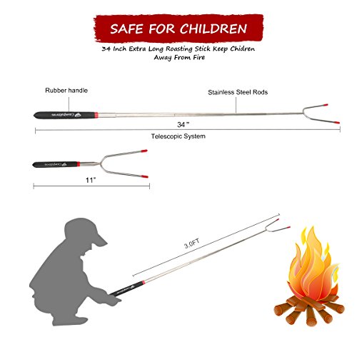 - ▶EXTRA LONG of 34 inch ROASTING FORKS: great suitable for children and adults to use as marshmallow sticks, hot dog forks, etc. Extendable of 34 inch keeps a relative safe distance to resist burns & sparks, well protect your safety.