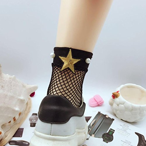 (Inkach)/Women's/Sandals/DIRECT FROM USA/Inkach Womens Fishnet Socks - Trendy Girls Ruffle High Ankle Socks Lace Mesh Short Socks