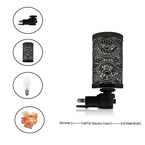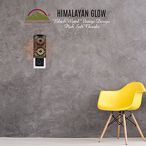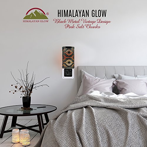 Himalayan Glow 1808 Black Metal Vintage Design Air Purifier Nightlight Pink Salt Chunks-Plug-in, Pink Salt and Black Metal Vintage Basket