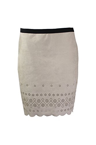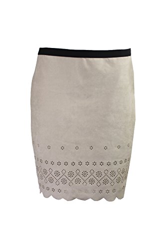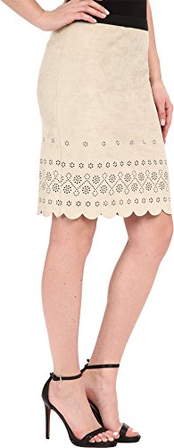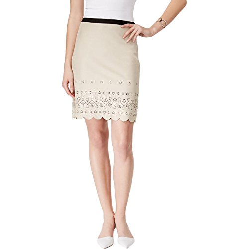 Binding : Apparel Product Description Intricate, laser-cut design creates a feminine look. Contrasting elastic waist. Concealed side zip closure. Scalloped hemline. Fully lined. 90% polyester, 10% spandex; Lining: 97% polyester, 3% spandex. Machine wash cold, hang dry. Made in the U.S.A. and Imported. 0