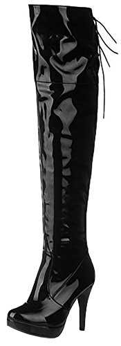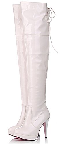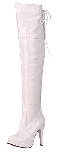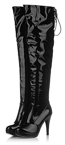 Binding : Apparel Product Description This pair of shoes is for women, girls, young ladies and brides. You will look sexy and elegant when wearing them. The heels measure 4.3 inches. You will look slimmer and slender in their high heels. This pair of shoes features above-the-knee and solid waterproof upper. You will look stylish in their simpleness. The design of round toe and human-made materials will make you more sexy. The pull on is easy for get on and off. You could wear them with jeans, dress and skirts. The sole is made of good rubber. It's really lovely and comfortable. 0