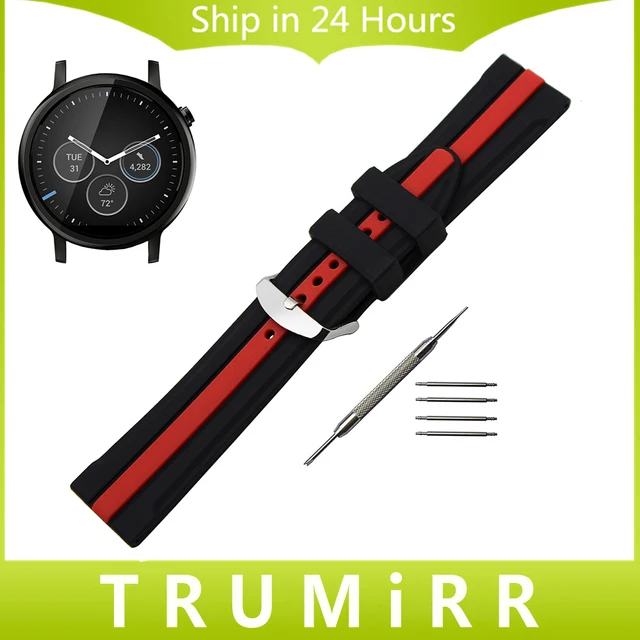 | [해외] 22 미리메터 실리콘 고무 시계 밴드 moto 360 2 46 미리메터 남성 samsung 기어 2 r380 neo r381 라이브 r382 스테인레스 스틸 버클 손목 스트랩 |