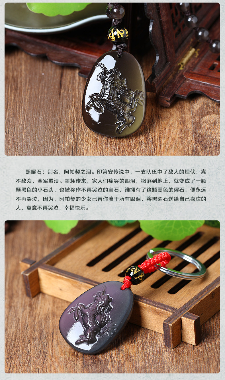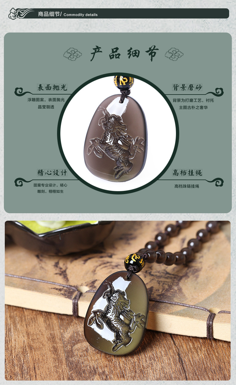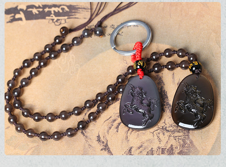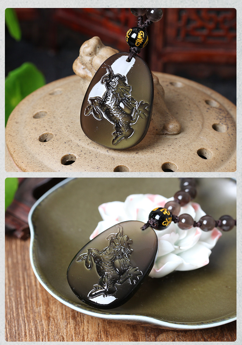 开光天麒聚宝属牛开光吉祥物吊坠彩虹眼黑曜石项坠
