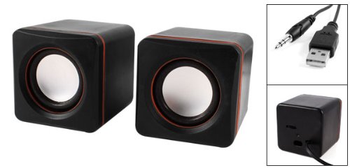 Uxcell uxcell 멀티 미디어 스피커 3.5mm스테레오 미니 블랙 플라스틱 큐브 디자인USB 2.0