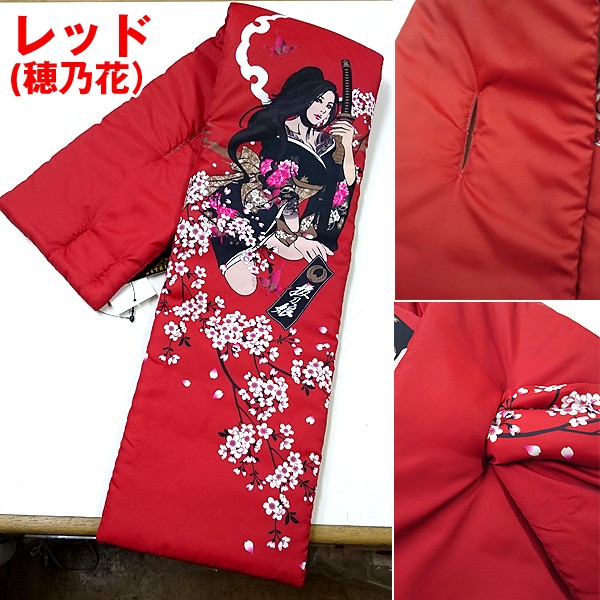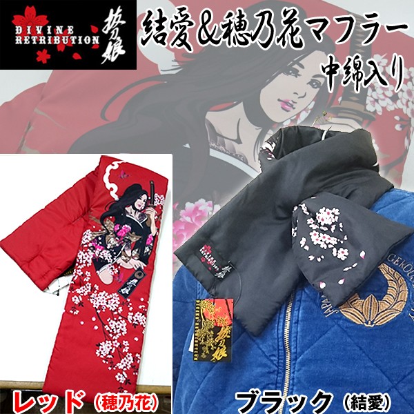 大人気和柄ブランド「抜刀娘」より2017-2018年冬・待望の新作マフラー場です!毎年人気の「ショートマフラー」豪華プリントと中綿入りで軽くて温ったかです。抜刀娘コレクターを唸らせる、新作マフラーです。数量限定販売!!早い者勝ちです!桜の花が咲き誇る中、妖艶に現れる結愛と穂乃花。ブラックカラータイプが「結愛」レッドカラータイプが「穂乃花」マフラーカラーによりキャラクターが違います。今年しかお目見えしないデザインとなります。お早めに。中綿入りのポリエステル素材の軽くて暖かいショートマフラーです。マフラー先端に切り込みがあり、首に回したマフラーの片方をその切込みに差し込めば、首にしっかり密着。ぬくぬく温かい。■カラー:ブラック(結愛)、レッド(穂乃花)