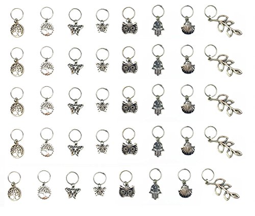 Hyamass 40pcs Antique Silver Ring Owl Butterfly Leaves Life of Tree Hand Scallop Charms Pendant Braid Hair Clip Headband Hair Accessories