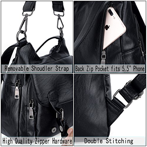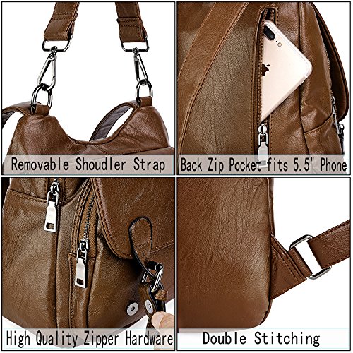 -. Brand : UTO -. ClothingSize : Large -. Department : womens -. Feature : HIGH QUALITY - Soft synthetic washed leather with heavy duty zipper hardware. 1 detachable top handle and 2 adjustable back straps. / WELL DESIGN - Magnetic Flapover Design. Heavy duty zipper hardware. Detailed streamlined stiching. Full-lined coffee color fabric lining. / Interior: 2 main large zipper compartments contain 1 internal zip pocket and 2 open pockets. Exterior: 1 back P.R.Ivate zipper pocket. / EXTREMELY PRACTICAL - Comfortably holds a 9.7" iPad Pro, tablet or a laptop 10" and under. Exterior pockets can hold your smartphone, cosmetic, hair band, house keys and other tiny items. / DIMENSIONS - 12.40"L x 4.84"W x 12.59"H. Weight: 2.07 pounds. Adjustable back straps: 32.67"(longest size). Handle drop: 9.76". -. ProductGroup : Shoes -. ProductTypeName : HANDBAG -. Size : Large -. Title : UTO Women Backpack Purse PU Washed Leather Large Capacity Security Ladies Rucksack Shoulder Bag