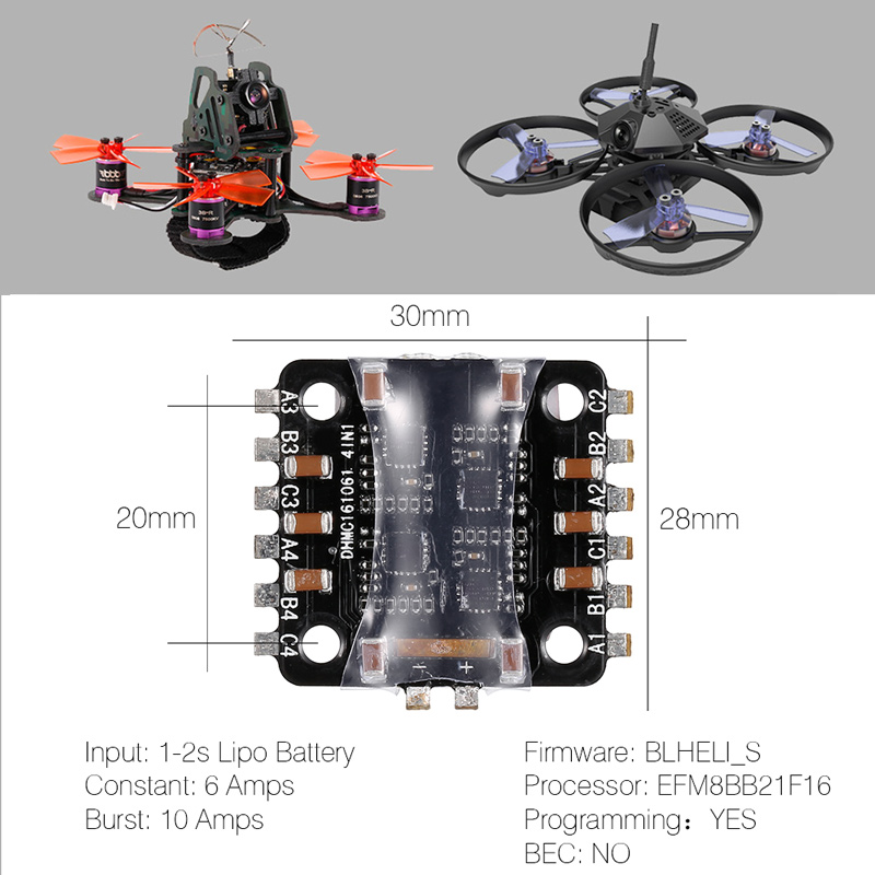 BLHeli_S is designed for superior performance in multirotors, and uses hardware generated motor pwm for smooth throttle response and silent operation.