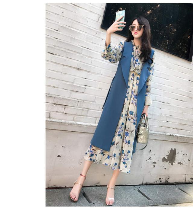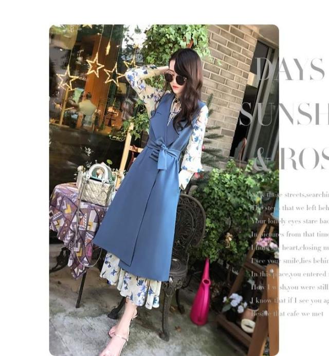 ロングスリーブ スーツ 女性の服 ブルーベストワンピース ツーピーススーツ 2018年秋トレンド