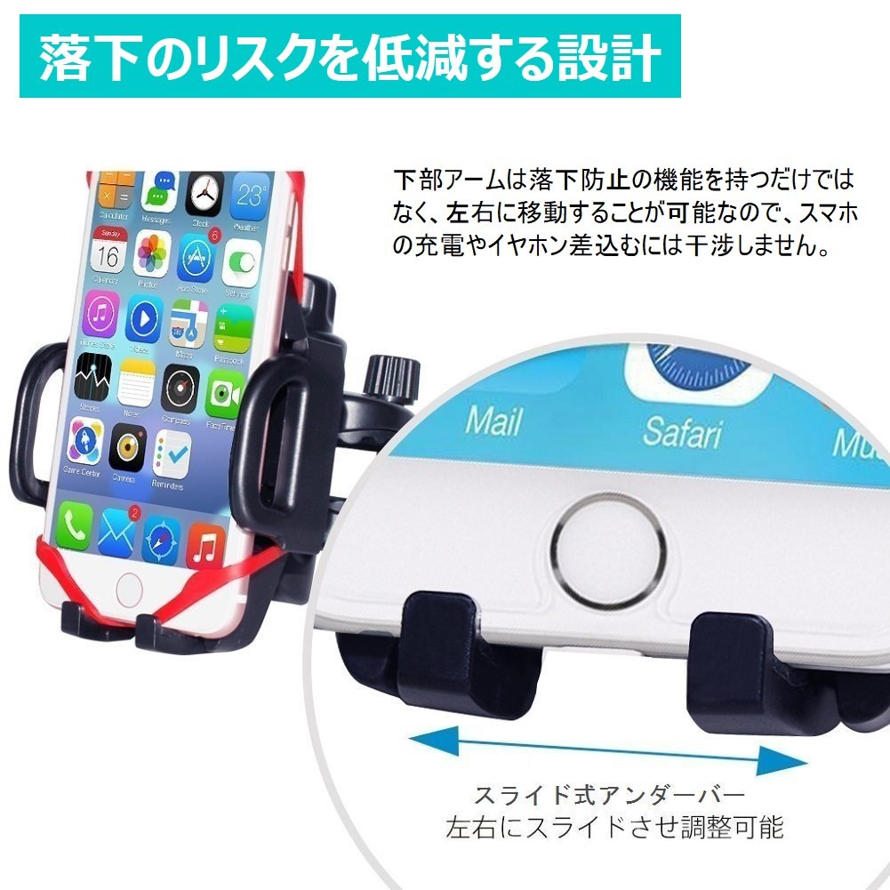 Since the lower arm not only has the function of preventing falling but also it can move to the left and right, do not cover the charging cable and earphone jacket, while talking while charging with a mobile battery during cycling, you can talk with your favorite music