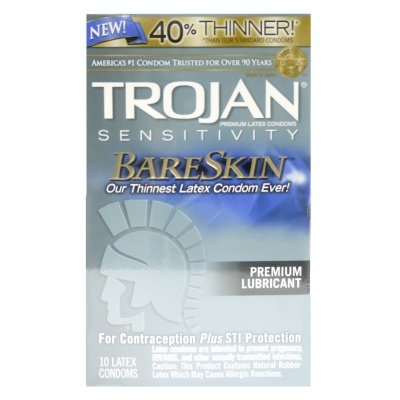Trojan BareSkin is Trojans thinnest latex condom ever, about 40% thinner than standard Trojan latex condoms. * Trojan BareSkin takes thin condoms to a totally different level. * Experience more sensitivity and more pleasure with Trojan BareSkin condoms