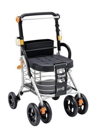 | 座ることもできる大容量シルバーカー。 |