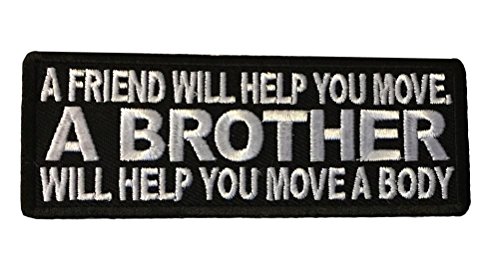 Product Description A Friend Will Help You Move, A BROTHER Will Help You Move A Body Patch Patch measures 4 inches wide by 1 1/2 inches tall Patch can be ironed, sewn or glued on. 0