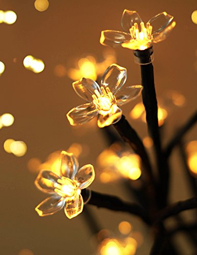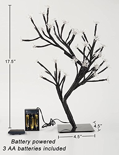CHERRY BLOSSOM TREE LIGHT BRINGS BEAUTY OF GARDEN TO YOUR HOME - This 17.5" tall cherry blossom tree light brings spring to your home for a whole year - Warmly-lit flowers will remind you of beautiful blooms & renewing air of spring; The lit LED bulbs in each blossoming flower radiate warm white glow: clear petals look like shining crystal, stand for elegance and mystery - A black base & branches complete the overall look - Turn on the light all day to make your home full of freshness nature.