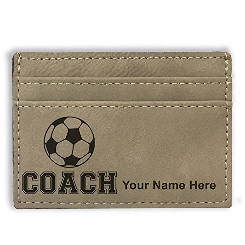 -. Binding : Apparel -. Brand : SkunkWerkz -. ClothingSize : Medium -. Color : Light Brown -. Department : mens -. EAN : 0654975841962 -. Feature : The Money Clip Wallet is laser engraved with the image that you see in the photo. / Your name or personalized message will be engraved on the wallet for free. / Synthetic leather construction. Includes space for 3 credit cards. / You may have one line of engraved text - 20 characters maximum. / Click the "Customize Now" button to begin customizing your wallet. -. ProductGroup : Apparel -. ProductTypeName : ACCESSORY -. Size : Medium -. Title : Money Clip Wallet - Soccer - Personalized Engraving Included (Light Brown) -. UPC : 654975841962