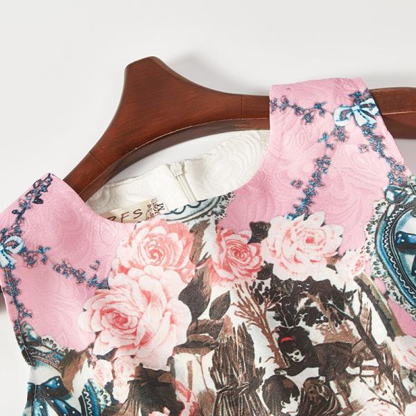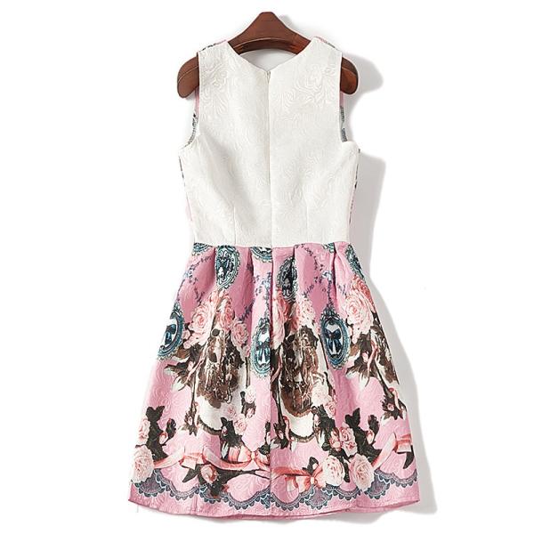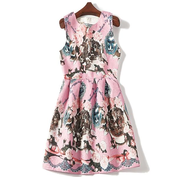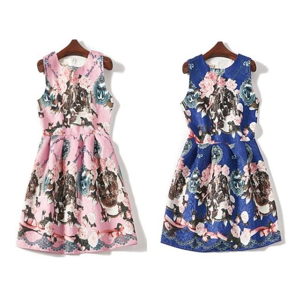 ラウンドネックとクラシカルな柄がポイントのワンピースです。