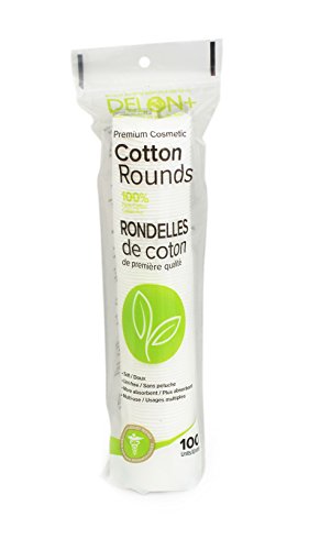DELON LABORATORIES Premium Cotton Cosmetic Pads/Rounds, White, 100 Count