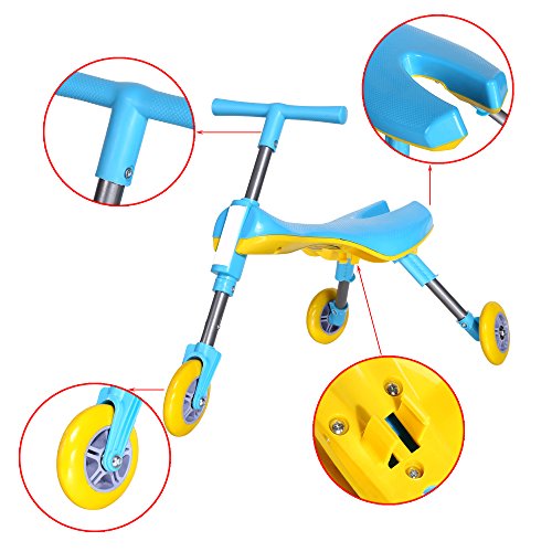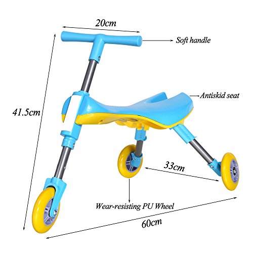 Foldable Outdoor Indoor Scooter Toddlers Glide Tricycle Specially designed for kids ages 3 years old and up Perfect for children who are always on the go. It will keep your child engaged while letting him or her to move around. This is a great travel friend for your toddler. You just have to snap the legs and handles up and of they go! It's small and comfy size makes it easy to carry. -Wheels: 3 -Main Color: Blue -Material: Metal, Plastic -No assembly required -Wheel diameter: 10cm/3.9inch -Recommended Age: 3 years old and up. Demensions: 60 x 33 x 41.5cm/23.4 x 12.9 x 16.2inch(L x W x H) Foldded size: 49 x 25 x 15cm/19.1 x 9.8 x 5.9inch Package Content: 1 x Toddlers Glide Tricycle, 1 x Guidance" 0