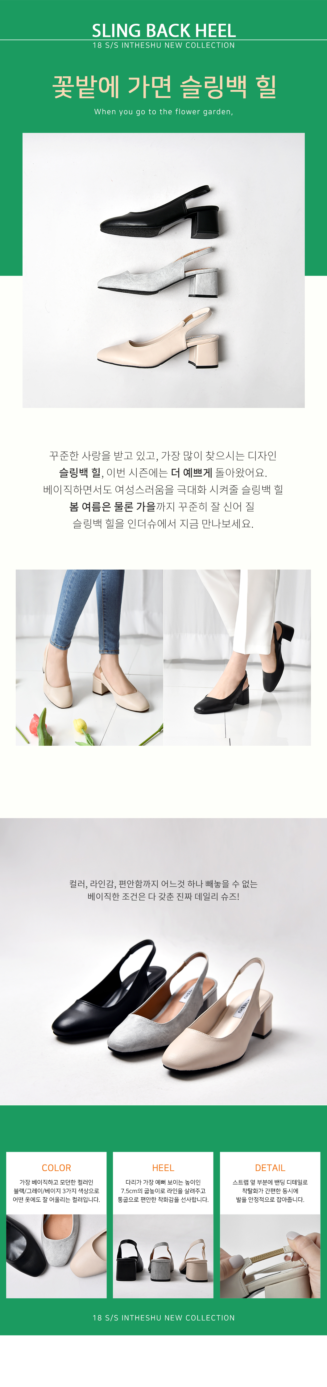 베이직하면서 세련된 라인으로 항상 사랑받는 세련된 슬링백 힐을 소개합니다.