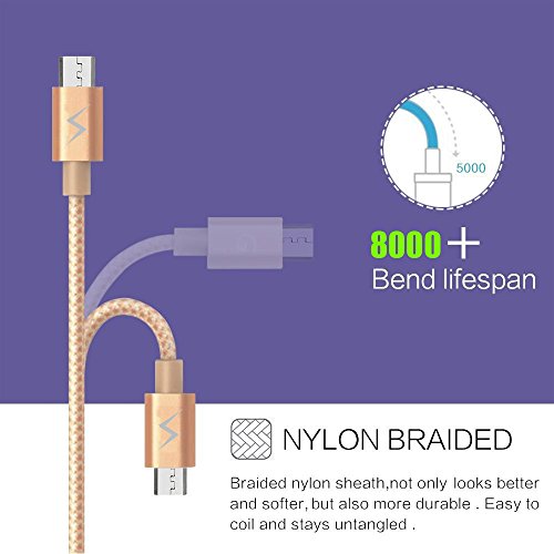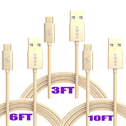 AOOK [3-Pack] (3ft 6ft 10ft) Micro USB Cable Premium Nylon Braided Micro USB Charger Cord High Speed USB 2.0 A Male to Micro Sync and Charging Cable for Samsung, HTC, Motorola, Nokia, Android (Gold)