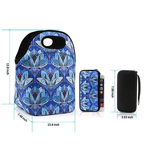 ★ Size: Super spacious 13.5" x 13.5" x 7.5" design to hold more food. small zip pouch 6.5" x 3.5" to hold your phone & change or keys