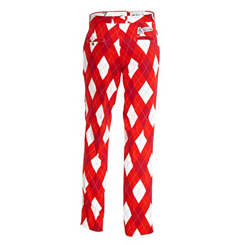 Royal & Awesome Back to the Fuchsia Diamond Mens Golf Pants, 32" Waist x 32" Leg - 81 Cm x 81 Cm
