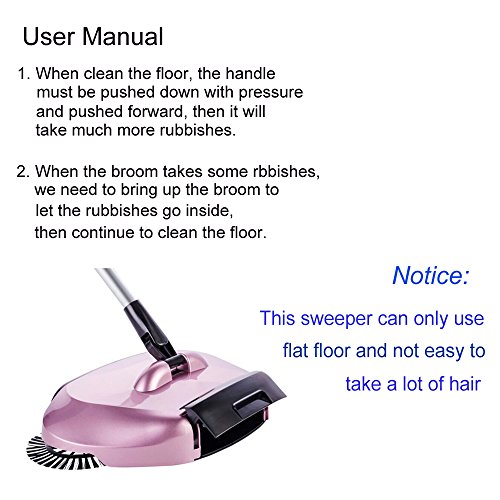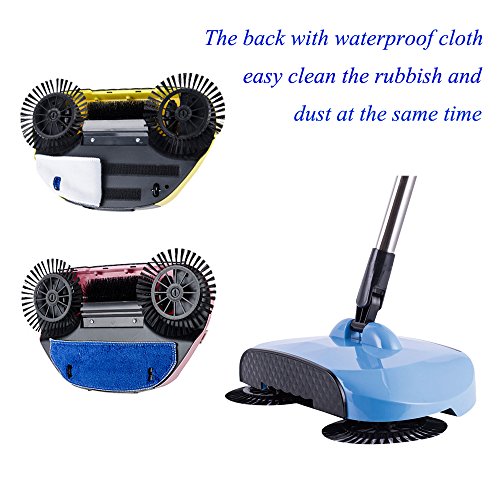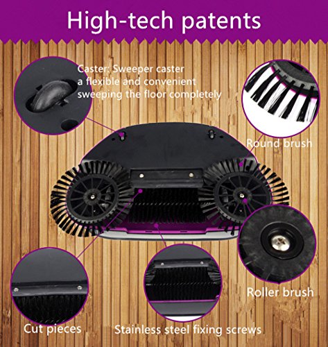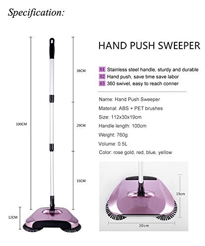 -. Feature : Save space: Broom & dustpan & trash bin three-in-one / Hand push, No need electricity / Adjustable handle, control the handle length freely / 360 degree high-speed rotating, easy collect rubbish and dust, even the corner / Lightweight, ABS body and Stainless Steel Handle