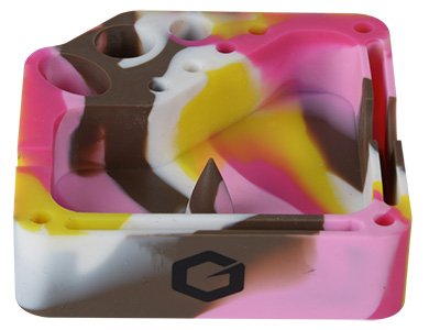 -. Feature : Premium Silicone Construction / Silicone topped ashtray with center smash piller. / Holds A Wide Variety Of Concentrate Tools / 4.3 X 4.3 X 1.29 In / Quantity: 1