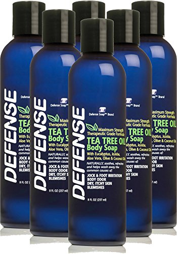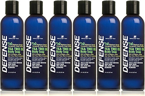 Defense Soap Body Wash Shower Gel 8 Oz (Pack of 6) - 100% Natural Tea Tree Oil and Eucalyptus Oil Helps Wash Away Ringworm, Jock Itch, Psoriasis, Yeast, and Athlete's Foot
