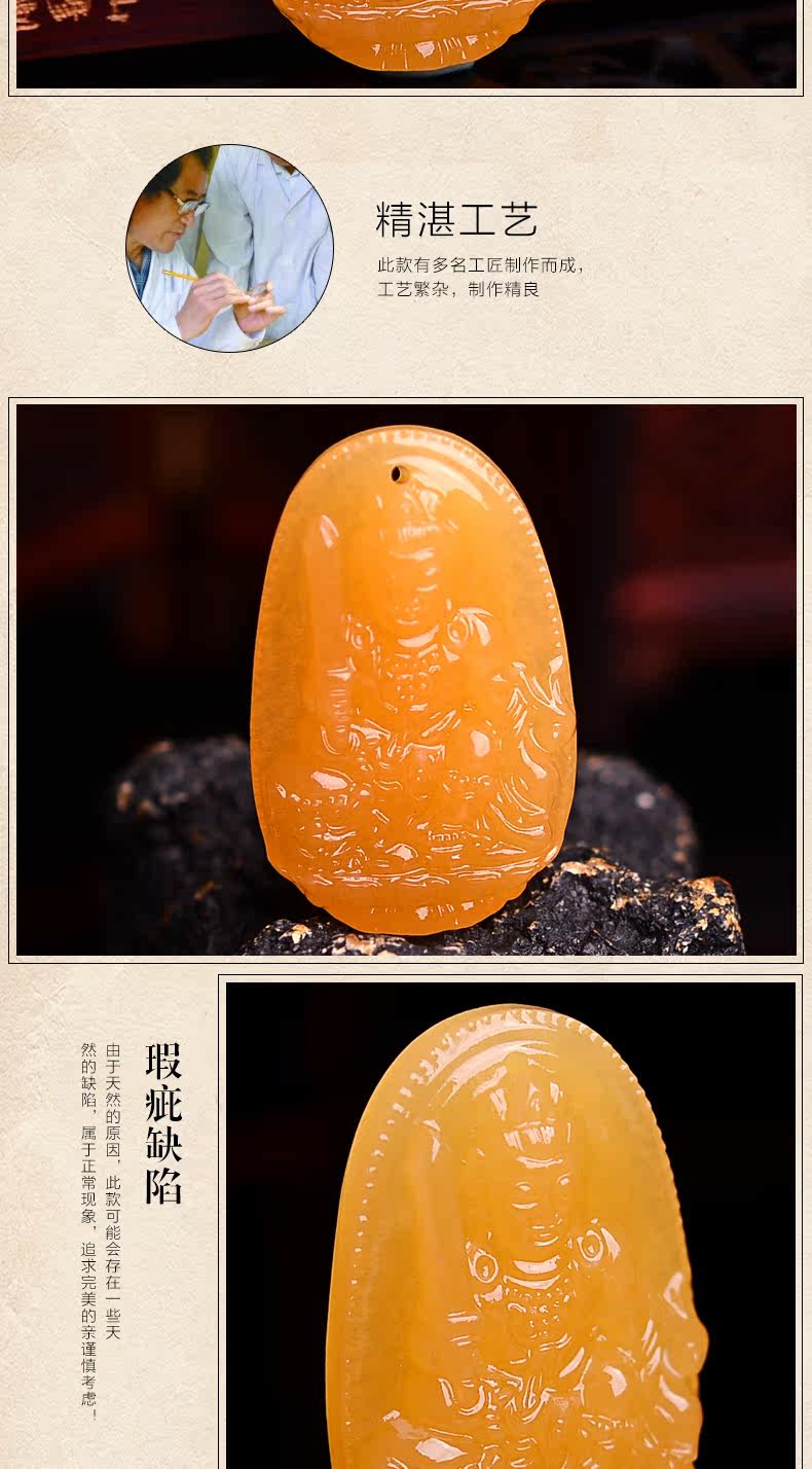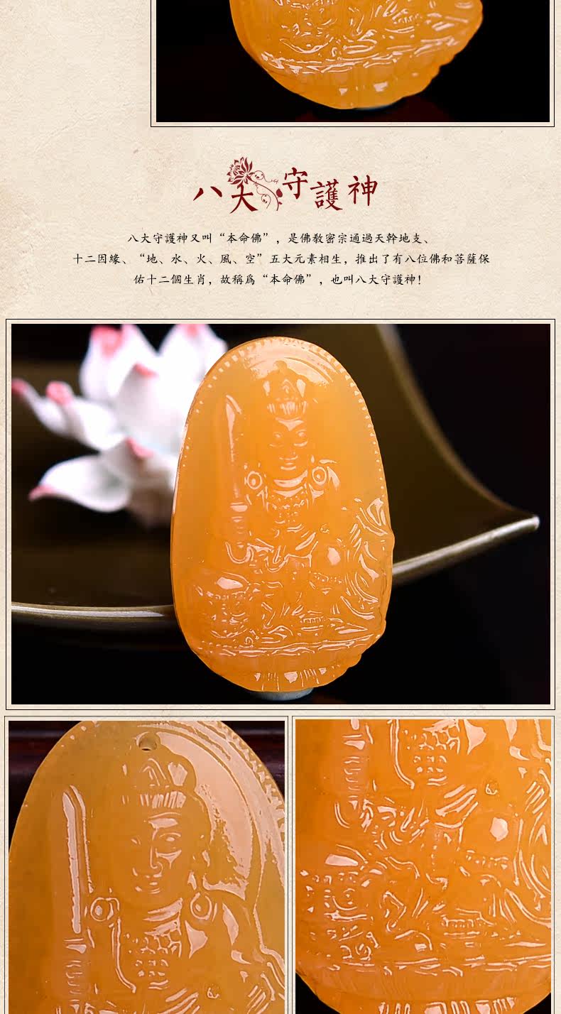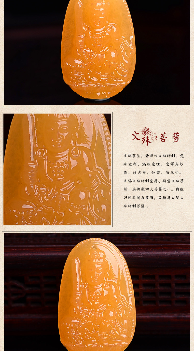 黄玉文殊菩萨吊坠男女款 生肖属兔本命佛年守护神项坠