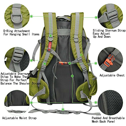 Studio : PioneerHiker Publisher : PioneerHiker Binding : Misc. Product Description Item Type: Hiking Backpack Capacity: 50L Color: Army Green, Green, Blue, Orange, Black Material: Water Resistant Nylon Weight: 1.9 lbs (0.87kg) Product Dimensions: 21.65*13.78*7.87inch (55*35*20cm) Usage: Hiking, Travel, Camping, Climbing, Mountaineer, on foot, day to day use, school, sports and other outdoor activities Feature: 1. High Quality Zippers, Easy Zip and Unzip 2. Side Zipper Pocket and Mesh Pocket for Water Bottle or other accessories 3. Breathable and Padded Back Panel 4. Adjustable Sternum Strap and Shouler Strap 5. Survial Whistle for Emergency 6. D-ring for Small Accessories 7. Bartack Stitching Reinforcement 8. Additonal Compartments for Phones, Keys, Small Accessories 9. Trekking Pole or Moisture-proof Pad Straps 10. Adjustable Waist and Chest Strap 11. Shoes Storage Pocket Package Inclueded: 1 * Pioneer Tec Backpack Please do not hesitan to contact us if you have any questions. We will reply you within 24 hours and offer you our best services. 0