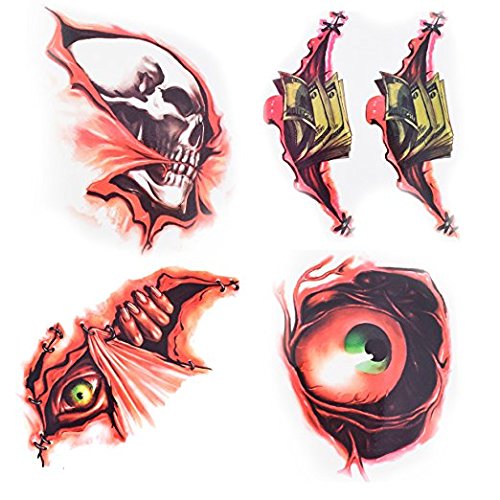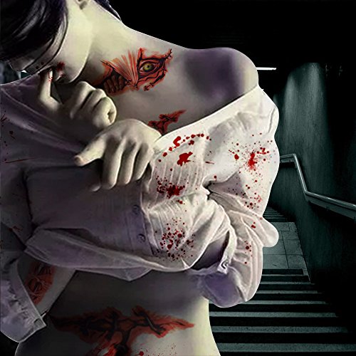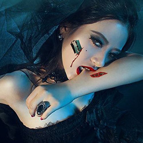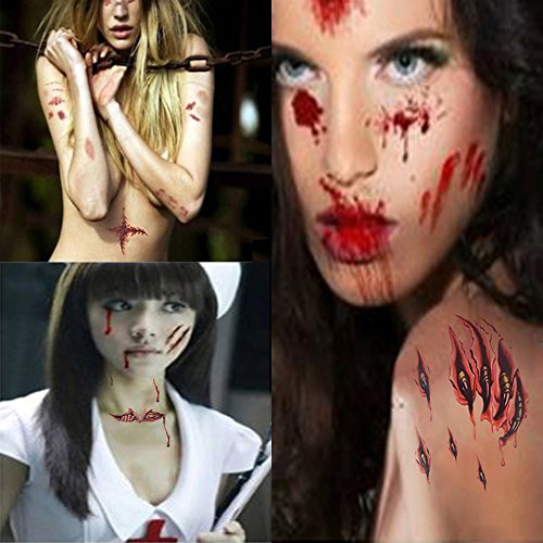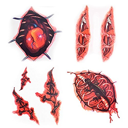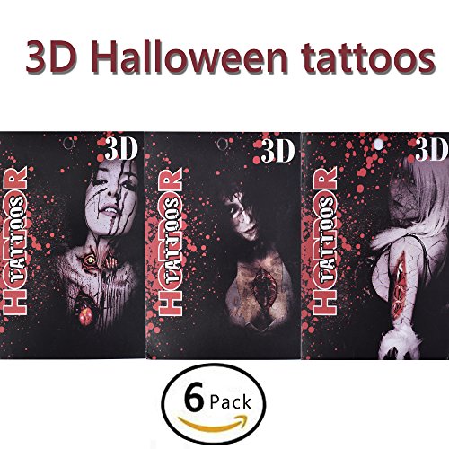 ★PACKAGE INCLUDED: • 6 x 3D Waterproof Temporary Terror Wound Blood Injury Scar Fake Tattoo for Halloween Makeup and Party Cosplay by JARVANIA