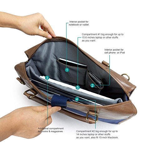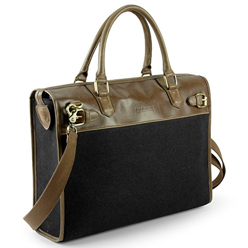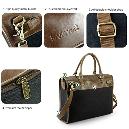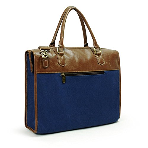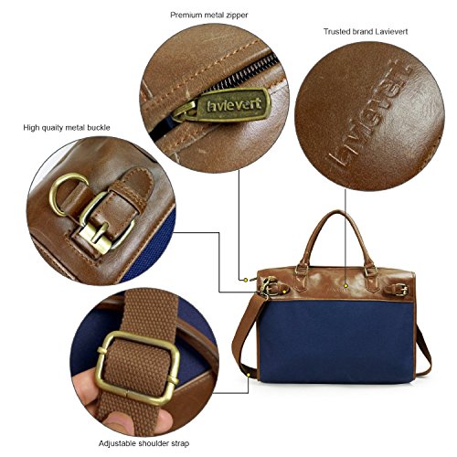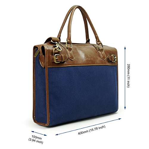 -. Title : Lavievert Blue Canvas & Premium PU Leather Laptop Bag