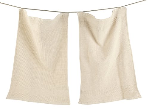 Tag 205840 Solid Terry Waffle Weave Dishtowel, Set Of 2, Cream, 20"W X 28"L