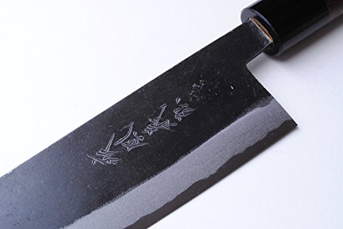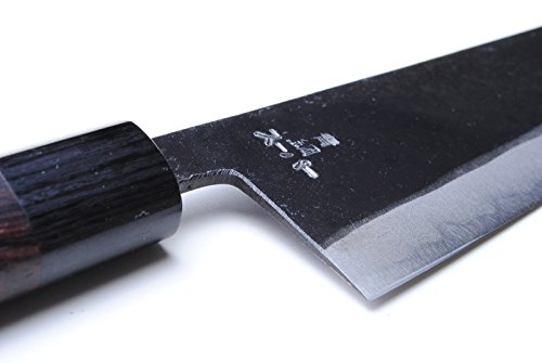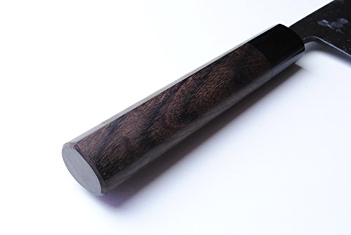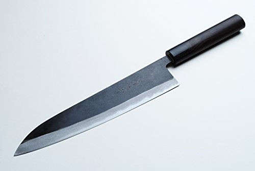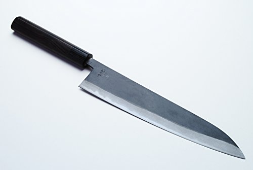 -. Feature : The Gyuto knife is the most versatile and essential of all chef knives used to chop, slice, and dice fresh produce like meat, fish, and vegetables. / Super Blue High Carbon Steel core (HRC 64-65) for its exceptional sharpness, high edge retention, and ease of sharpening. / Sandwiched between two softer layers of steel to add to its durability and ease of maintenance. / Complimented with a handcrafted Japanese style Shitan Rosewood handle that allows for an overall lightweight construction. (5.9 oz) / Hand wash with mild cleanser; NSF Approved; Handmade by skilled tradesmen in Japan
