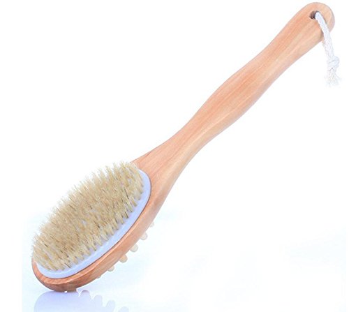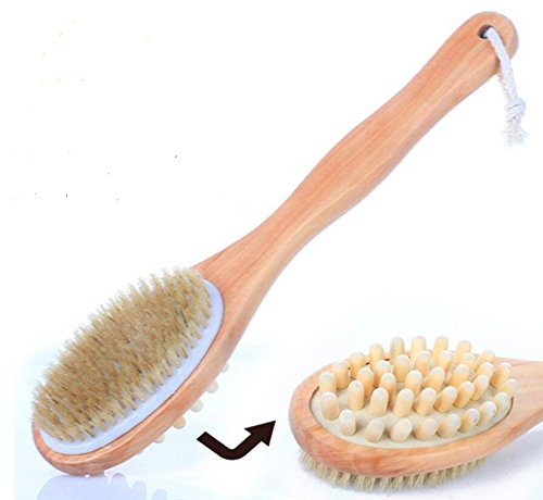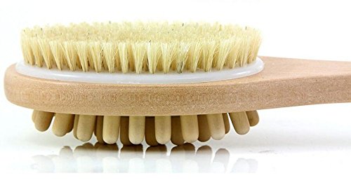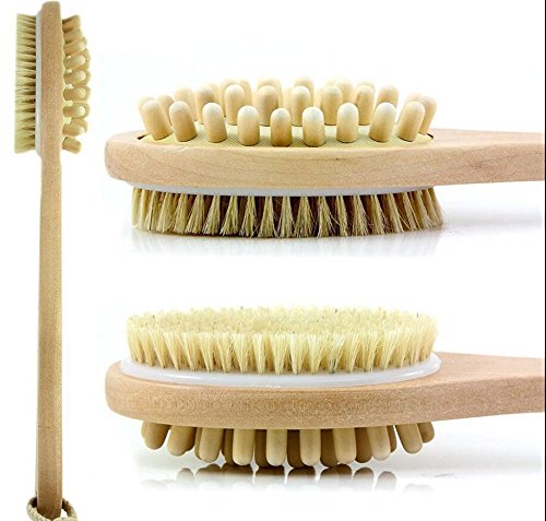 Natural Bristle, High Quality Polished Wood and Dual Head (Nubbed Side for Cellulite Massage). Easy to Reach Your Back With the Sturdy Long Handle