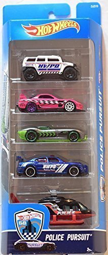 -. Feature : Hot Wheels Police Pursuit 5 pack / 1:64 Scale Die Cast Cars / Includes: 24/Seven, Fast Felion, Dodge Charger Dift Car, Rockster, Propper Chopper / Includes 5 vehicles
