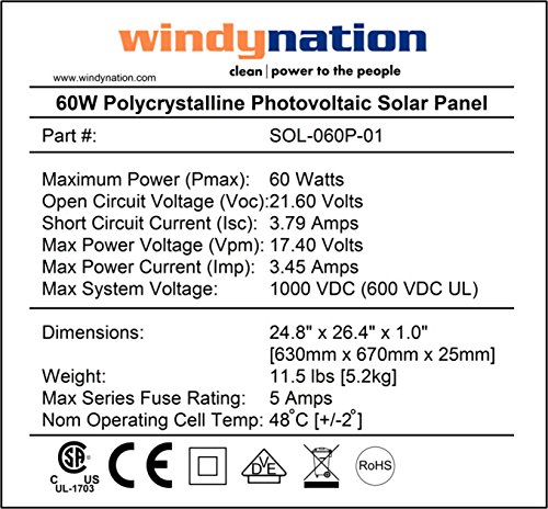 WindyNation 60 Watt 60W Polycrystalline 12V 12 Volt Solar Panel Battery Charger – Boat RV Gate Off-Grid