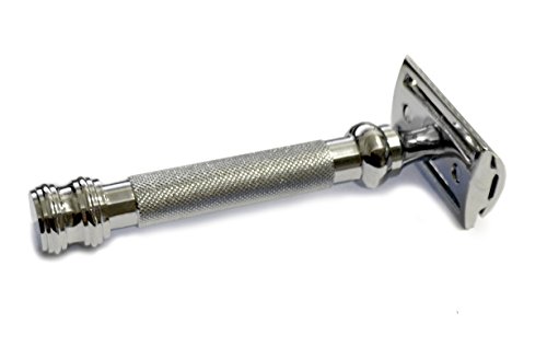 -. Feature : Barber Pole design Handle / Long Handle 4 Inch. Heavy weight / A Firm Grip. Elegant design for easy blade replacement / Solid brass core and polished chrome finish. Chrome plated brass frame for durability! / Extra weight allows for extra smooth, super comfortable shave