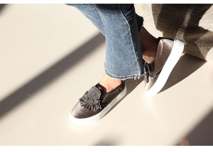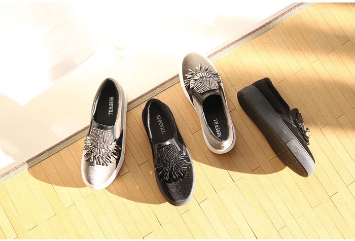 商品名:スリッポン レディース スニーカー ビジュー 2017 秋 冬 ファッション 靴 婦人靴
