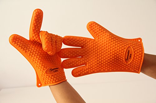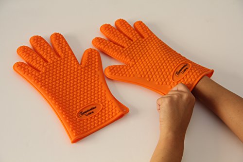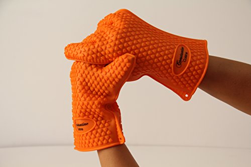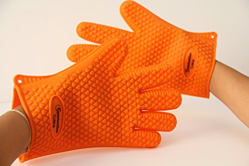 NEW 2016 Constantine Cuisine Heat Silicone Baking & BBQ Gloves-Best Brand Heat Resistant Cooking And Grill Gloves-Protect Your Hands And Avoid Accidents- Satisfaction Guaranteed(Sold by pair)(Orange)