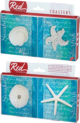 Star Fish Sea Shell on Blue 4 Piece Absorbent Ceramic Coaster Set